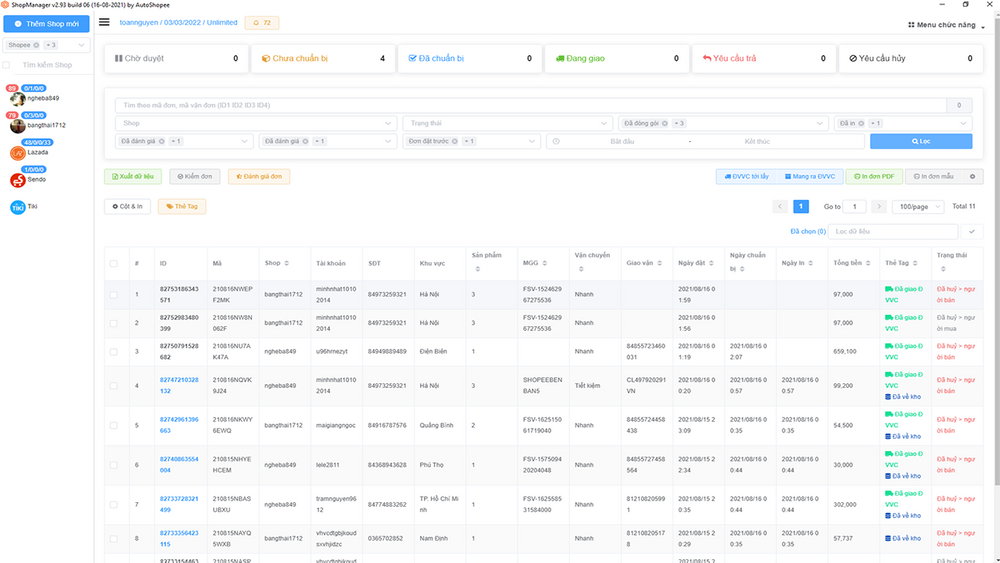 Sử dụng TAG để quản lý đơn hoàn, tối ưu đóng gói 1000 đơn Shopee Shop Manager • 16 Th08 2021 Sử dụng thẻ Tag để đánh dấu và lọc đơn hàngCác ứng dụng của thẻ Tag Theo dõi đơn hoàn đã về kho chưa Tối ưu đóng gói đơn hàng Video hướng dẫnMô tảTạo thẻ Tag Chuyên mục Shop Manager tag Đăng ký nhận bài mới qua email Nhận bài viết mới nhất được gửi tới email của bạn. Email của bạn Đăng ký Bây giờ bạn hãy kiểm tra hộp thư đến và bấm vào đường link để xác nhận đăng ký. Vui lòng nhập địa chỉ email hợp lệ Ui! Đã có lỗi xảy ra khi gửi email, hãy thử lại sau. Admin 02 Dành riêng cho bạn ai Tích hợp AI vào công cụ sao chép sản phẩm 9 tháng trước • 1 phút đọc Shop Manager Lịch sử In đơn PDF tra cứu mã vận đơn một năm trước • 1 phút đọc Shop Manager Giới hạn thiết bị sử dụng ShopManager 3 năm trước • 1 phút đọc